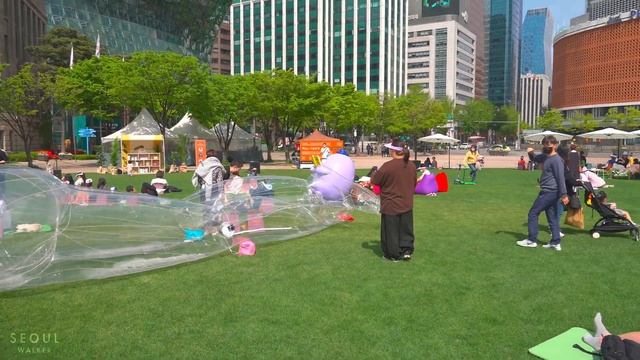 Seoul Plaza is a central plaza located in front of Seoul City Hall at Taepyeongno, Jung-gu in Seoul, South Korea. It was reopened on 1 May 2004, by Seoul Metropolitan Government, with the purpose of providing the public an open space. It is part of the City's plans for environmentally friendly renovation projects such as the Cheonggye Stream and Gwanghwamun Plaza. Filmed: April 23, 2022, 1:50PM (pre-recorded) Weather: Sunny ☀️ Temperature: 26℃ / 78℉