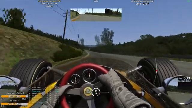 Поддержать канал и заказать музыку на стриме: https://donatepay.ru/don/SergeyRaves Прямая трансляция с исторической гонки по Spa 1966 года на легендарных болидах Lotus 49 и Ferrari 312/67, онборд с Lotus 49. Тема ивента: https://vk.com/wall-172225091_1880 Страница ивента: http://raves.linect.ru:50041/championship/316f9ff1-c325-4073-990a-f3544faa3245 Группа "Вечерний Равес": https://vk.com/ravesracing Дискорд: https://discord.gg/JSF5Rvb Twitch: https://www.twitch.tv/sergeyraves Поставь лайк, если понравилось это видео. Команды бота на стриме, ставки, рейтинги и т.д: https://vk.com/topic-172225091_39328124 Подпишись на мой канал: https://www.youtube.com/c/SergeyRaves?sub_confirmation=1