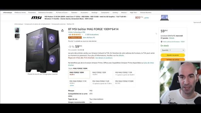 ✅Mon site internet Hardware https://fnk-hardware.fr ▬▬▬▬●LIENS●▬▬▬▬ ➡️CARTES GRAPHIQUES GTX 1660 Ti https://ebay.us/A7iwvR Intel ARC A750 https://tidd.ly/3sAkiHL / https://tidd.ly/3HmxqUK RTX 4060 Zotac https://tidd.ly/473V96h RX 6650 XT XFX https://tidd.ly/48HrL7T RTX 3060 12Go PNY https://ebay.us/4X8QJr RX 6700 XT https://cutt.ly/mwKBIdLS RTX 3080 PNY https://ebay.us/XB3ykW RX 7800 XT Sapphire https://amzn.to/3S3SJzo ➡️PROCESSEUR / CARTE MERE Ryzen 7 5700X https://amzn.to/48VEV0o Ryzen 7 7700 https://tidd.ly/3FkZCWM Ryzen 7 7800X 3D https://tidd.ly/421XHku i5 10600KF https://tidd.ly/48lAdcL i5 13600KF https://tidd.ly/3O7qGh3 Aorus B550 Elite V2 https://amzn.to/48NULuA Gigabyte B650 Gaming X https://cutt.ly/cwL3c7Gk MSI B650-S WiFi https://amzn.to/3SqySeQ MSI B760-P II https://tidd.ly/3NZd9rY Asus TUF B760 WiFi https://tidd.ly/42gguZt Promo LDLC (code BANQUISE) https://cutt.ly/7wL3bEEK ➡️RAM / SSD 16Go DDR4 3600 Corsair https://amzn.to/3u1JiZi 16Go DDR4 3200 Corsair RGB https://amzn.to/41ZOaL4 32Go DDR4 3200 Netac https://amzn.to/3Spzf9C 32Go DDR5 6000 Corsair RGB https://amzn.to/3HzwIU4 SSD NVMe 500Go PNY https://tidd.ly/3R3rTVh SSD NVMe 512Go Lexar https://amzn.to/3u311iT SSD NVMe 1To MSI https://cutt.ly/MwKBFpbl SSD NVMe Gen4 2To Lexar https://amzn.to/3UazLcT SSD NVMe 4To Crucial P3 https://amzn.to/3OjjAX4 ➡️ALIMENTATION / BOITIER / REFROIDISSEMENT Alimentation 550W MSI https://amzn.to/4bbIUbe Alimentation 750W ATX3 MSI https://amzn.to/47ymspP Alimentation 850W ATX3 MSI https://amzn.to/3SdUhbi Alimentation 1000W SFX-L Corsair https://amzn.to/48O9PrJ Promo Aerocool (code WINTERAEROB) https://cutt.ly/awL3mAYh Boitier Cooler Master NR400 https://tidd.ly/41PDUoD Boitier Noua Vision Z2 mini https://amzn.to/3tS39Kd Boitier MSI MAG Forge 100M https://amzn.to/47swadn Boitier Lian Li Lancool 215 https://cutt.ly/kwL3QFhz PACK MSI 111R + Alim. 650W https://tidd.ly/3Hfo3Gq PACK Corsair 4000D + Alim. 750W https://tidd.ly/3U1zTeN Ventirad Thermalright Double https://amzn.to/3HnvCKV Watercooling Thermalright Frozen Edge https://amzn.to/3u7wAbh ➡️ÉCRAN / PÉRIPHÉRIQUES GAMER Écran 24" Medion 100hz IPS https://tidd.ly/3SoJQS8 Écran 24" AOC 165hz VA https://tidd.ly/4bbcM7w Écran 27" Iiyama 165hz IPS https://amzn.to/496wv6H Écran 27" MSI 180hz IPS https://cutt.ly/SwL3EOga Écran 27" QHD 155hz VA AOC https://tidd.ly/41dLQzs Écran 27" QHD 144hz IPS Gigabyte https://tidd.ly/3ymPolL Clavier Cooler Master CK721 https://cutt.ly/BwJO2ZMR Clavier Razer BlackWidow V3 TKL https://amzn.to/48OknHB Souris Cooler Master MM730 https://amzn.to/3tHgZPH Souris Mountain Makalu 67 Blanche https://amzn.to/3O0l0FJ Casque Epos GSP301 blanc https://cutt.ly/HwKBLMTw ➡️PC PORTABLE / PC GAMER Portable Multimédia Medion 15" https://tidd.ly/3TTAeAb Portable Gamer Lenovo RTX 3060 https://tidd.ly/3u7WKuq Portable Gamer Lenovo 17" RTX 3070 https://tidd.ly/499MgK8 Portable Gamer Aorus RTX 3070 https://tidd.ly/3vXWw9N Portable Gamer HP Victus RTX 4060 https://tidd.ly/3R4tVYH Portable Gamer HP Victus RTX 4070 https://tidd.ly/3U5If4Z Portable Gamer HP Omen RTX 4080 https://cutt.ly/iwKBX4QJ Portable Gamer HP Omen RTX 4090 https://cutt.ly/NwKBCoki PC Gamer MemoryPC RX 7800 XT https://tidd.ly/3SxshiT ➡️CONFIG SEMAINE à 550€ KIT AMD https://tidd.ly/493EUri (faire changements de la vidéo) Ajouter boitier Aerocool, Cooler Master ou Noua ▬▬▬▬●CONTACT●▬▬▬▬ ➡️E-mail Pro : fnk.youtube@yahoo.com ➡️Conseil d'achat https://www.fnk-hardware.fr/conseil/ ➡️Twitter https://twitter.com/FnK_BF ⏱ TIMERS 00:00 INTRO, CARTE GRAPHIQUE 04:05 PROCESSEUR, CARTE MERE 08:44 RAM, SSD 11:14 ALIMENTATION, BOITIER, REFROIDISSEMENT 17:24 ÉCRAN, PÉRIPHÉRIQUE 21:19 PC PORTABLE, PC GAMER 26:44 CONFIG SEMAINE