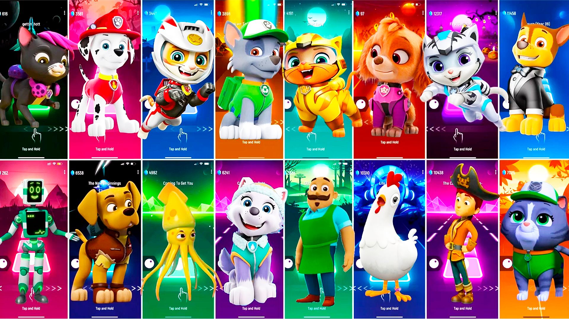Мультики для Детей Щенячий Патруль Tiles Hop - МАРШАЛЛ, РОККИ, СКАЙ, ГОНЩИК