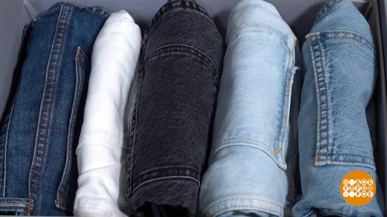 Как компактно хранить джинсы в шкафу. Доброе утро. Фрагмент выпуска от 27.02.2025