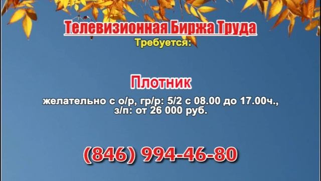 Вакансии и телефоны прямых работодателей в специализированной программе по трудоустройству "Телевизионная Биржа Труда" - г.САМАРА т/к РЕН-ТВ