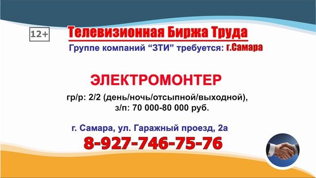 ТЕЛЕВИЗИОННАЯ БИРЖА ТРУДА – это слайдовая программа по трудоустройству, где голосом озвучивается ВАКАНСИЯ и ТЕЛЕФОН прямого работодателя, выходит на телеканале ГУБЕРНИЯ в Самаре и Самарской области