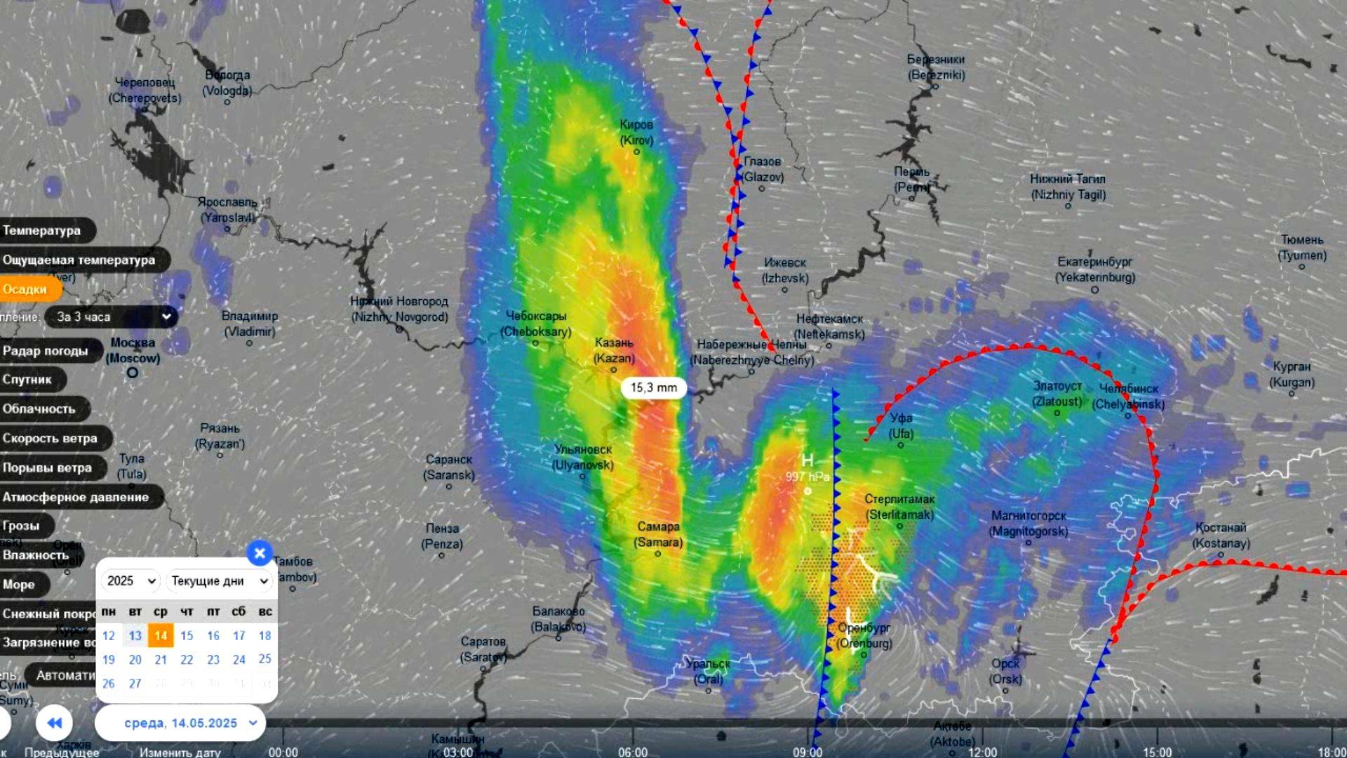 С 14 на 15 мая новый циклон принесет сильные дожди на Поволжье и на Урал. Прогноз погоды