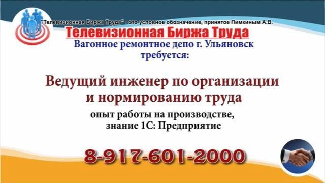 Вакансии и телефоны прямых работодателей в специализированной программе по трудоустройству "Телевизионная Биржа Труда" - г.Ульяновск