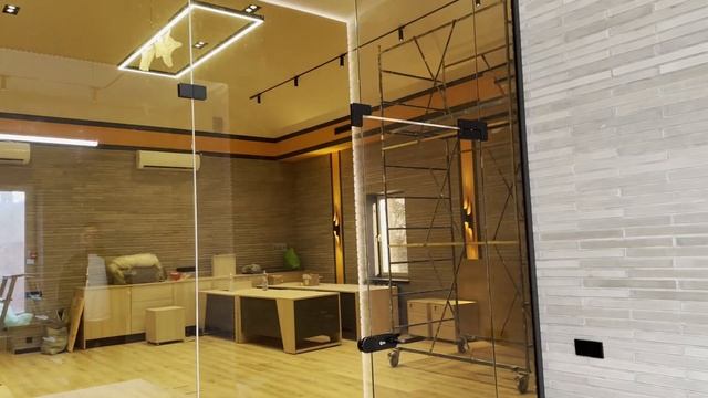 Элегантное зонирование офиса детали проекта в Подольске Теги: стеклянные перегородки,стеклянные двери,стеклянные перила,душевые кабины