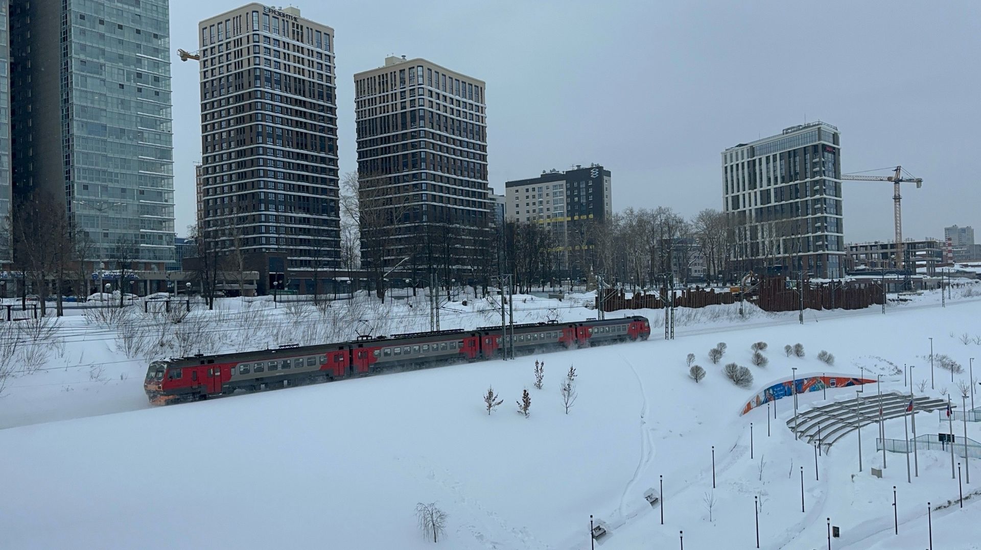 Электропоезд ЭД4М-0228 на перегоне в Перми, 2026 год