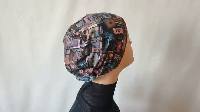 Головной убор после химиотерапии Бини хб трикотаж Шапочки после химиотерапии Бини 2-х слойная с заворотом Цвет: черный в белую крупную пропись Описание общее; Головной убор из хб трикотажа на аналогичном подкладе Состав: верх трикотаж кулирная гладь 100% хб Головной убор представляет собой двухслойную шапку бини с заворотом на конце Бини хб трикотаж 112178-1