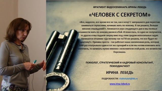 ➤ Ирина Лебедь - психолог, стратегический консультант. Опыт работы в области практической психологии – более 25 лет. ➤ Официальный сайт психолога Ирины Лебедь - http://www.irina-lebed.ru/ ➤ Видеосеминары Ирины Лебедь - http://www.irina-lebed.ru/obuchenie/ ✆ Как ещё можно с нами связаться: ✦Skype: irina.tetatet ✦Email: clubtetatet@bk.ru ✦WhatsApp: +7 (916) 812-21-73 ✦Telegram: https://t.me/masterskaya_probuzhdenie ✦Facebook: https://www.facebook.com/club.tetatet ✦ВК: https://vk.com/club38480683 ✦Twitter: https://twitter.com/Clubtetatet ✦ЖЖ: https://lirina.livejournal.com/ ✦YouTube канал: https://www.youtube.com/user/clubtetatet/featured ✒ По вопросам приобретения занятий и видеосеминаров Ирины Лебедь оставляйте заявки на почту: clubtetatet@bk.ru ➤ Проект ПРОБУЖДЕНИЕ рассчитан на год. За этот период: мы обретаем способность управлять собственной жизнью; - учимся распознавать, классифицировать людей по их природе, действиям, словам; - выстраиваем честные и понятные отношения; - ставим правильно цели и достигаем их в кратчайшие сроки; - уходим от программной судьбы, понимаем, что происходит вокруг и знаем, что со всем этим делать. ➤ За подробностями и условиями участия в проекте обращайтесь на почту clubtetatet@bk.ru. ✒ Запись на презентационную Skype-встречу о проекте также производится по почте clubtetatet@bk.ru или WhatsApp: +7 (916) 812-21-73 ➤ Презентация проекта "Пробуждение" и краткое содержание: https://youtu.be/Tu88Jxr_-dw ➤ Презентация обучения в мини-группе на проекте: https://youtu.be/F6GDigC9uUY ➤ Описание и содержание занятий: https://irina-lebed.ru/proekt-probuzhdenie/ ➤ ПЛЕЙЛИСТЫ по группам видео: 0. Презентации программ, семинаров и проектов: https://youtube.com/playlist?list=PLEISaR6AjsIg-Wo5iOnoPqq_KC17GF2VS 1. Секреты счастливых отношений:https://youtube.com/playlist?list=PLEISaR6AjsIhRJmAtlCPS_bEVzaYQN4L1 2. Муж и жена. Семья и отношения в ней: https://youtube.com/playlist?list=PLEISaR6AjsIifKYoxBt6hIDG2H0E83Dxu 3. Отношения с матерью: https://youtube.com/playlist?list=PLEISaR6AjsIivB5UcLfVyCFk594Z9cIC5 4. Отношения с отцом: https://youtube.com/playlist?list=PLEISaR6AjsIjktuBOZ9X8oTwQDQwQhpMJ 5. Страхи. Как перестать бояться?: https://youtube.com/playlist?list=PLEISaR6AjsIhRJmAtlCPS_bEVzaYQN4L1 6.Уверенность и самооценка: https://youtube.com/playlist?list=PLEISaR6AjsIiOLUwtqkDER6V6VJ1w5IRL 7. Мышления и убеждения. Как изменить: https://youtube.com/playlist?list=PLEISaR6AjsIjEjFD4qP__xLnvHdri77z2 8. Деньги и достаток: https://youtube.com/playlist?list=PLEISaR6AjsIheomC7eHNSiSGvzxEBiqrC 9. Как достичь желаемого: https://youtube.com/playlist?list=PLEISaR6AjsIinCh0w4NNspoPvNAok6mHx 10. Фрагменты проекта "Пробуждение": https://youtube.com/playlist?list=PLEISaR6AjsIgbe-vfZUVE8nHzwEyJGa8r 11. Презентации занятий проекта "Пробуждение": https://youtube.com/playlist?list=PLEISaR6AjsIipxPpRrCDmZwzX42MHESjB 12. Публичные консультации: https://youtube.com/playlist?list=PLEISaR6AjsIgktWzUVWeal5hcLS989dFe А также: "Как изменить привычки", "Прошлое, настоящее и будущее", "Как обрести силу", "Как достичь цели", "Психология стройности", "Женственность и женская природа", "Управление эмоциями, личные границы", "Как принять и поверить в себя", "Стримы", "Ответы на вопросы","Отношения со свекровью", "Семинары" и другие. Позвольте себе жить! #проектпробуждение #пробуждение #баланс #психологириналебедь #психолог