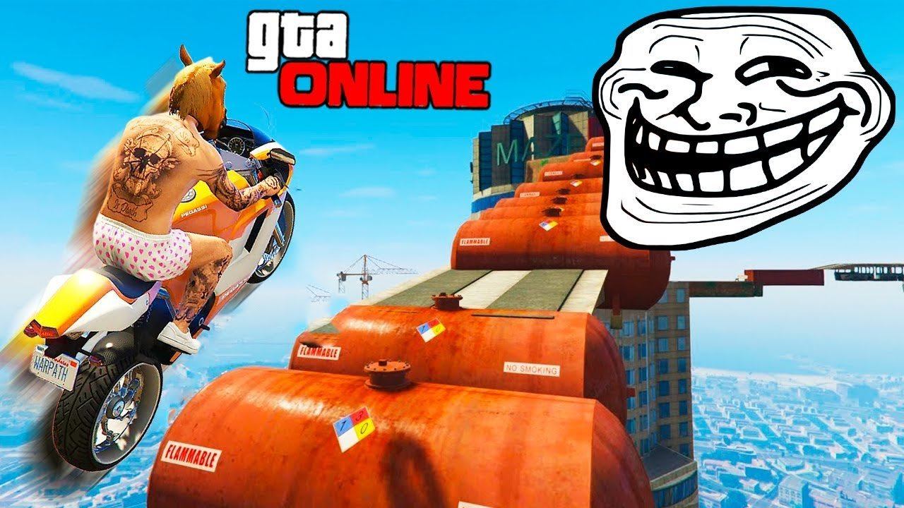 УГАРНЫЙ ТРОЛЛИНГ НАД БАНДОЙ НА МОТОЦИКЛАХ В ВОЗДУХЕ В GTA 5 ONLINE