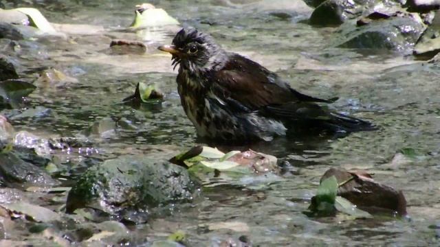 Дрозд рябинник купается