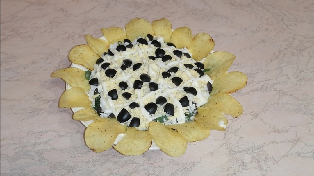 Салат "Подсолнух" с печенью трески