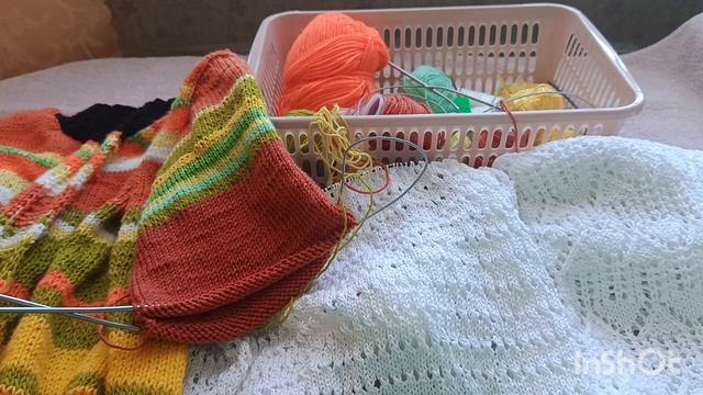 Кардиган " яркая Осень" . вяжем из остатков пряжи .
