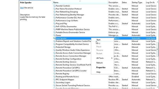 Printer Spooler Service Automatically Stopped in Windows 7