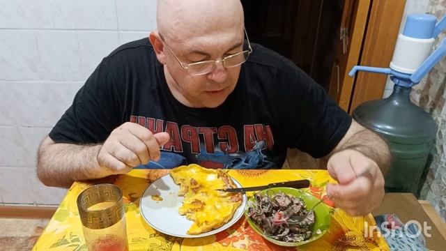 Мукбанг. Яичница с беконом, грузинский салат с баклажанами. Хосе де Рибас и Терентий Дерибас.