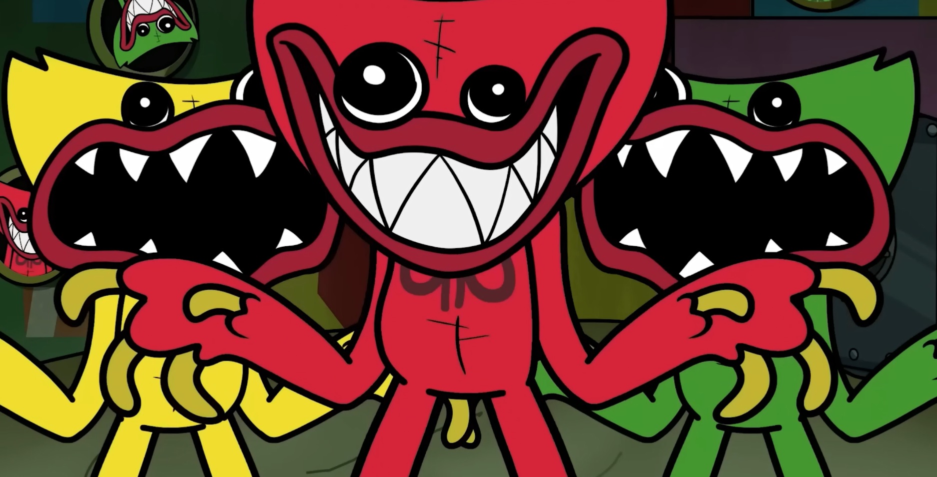 Когда Игрок и Хагги Вагги случайно попадают в автомат Wack-a-Wuggy, они придумывают план по переработке всех разноцветных Хагги Вагги, которые на них напали. Но вместо того, чтобы стать уничтоженными, все они объединяются в гигантского Радужного Хагги! Теперь им нужно пройти мимо динозавра Брона, чтобы получить доступ к лучу темноты, который сможет навсегда остановить Радужного Хагги. По сюжету Хагги Вагги — антагонист, который охотится за игроком, бывшим сотрудником фабрики игрушек Playtime Co. Лучше всего огромное антропоморфное существо с синим мехом умеет обниматься (отсюда и название Huggy — от англ. to hug, то есть «обнимать»). Причем сперва он был добродушен, но из-за катастрофы на фабрике стал монстром. #ХагиВаги #HuggyWuggy #KidsTime #KidsTimeTV #ВремяДетишек #Анимация #Мультфильмы https://rutube.ru/channel/14267127/ - канал KidsTime.TV https://rutube.ru/plst/150375 - мультфильмы Хаги Ваги https://vk.com/kidstime_tv - Канал KidsTime.TV в VK