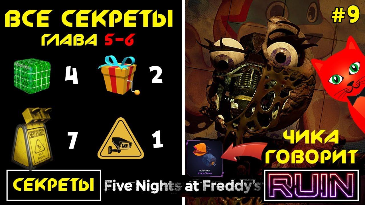 Стань крутым и получай эксклюзивные бонусы! Будь спонсором канала - https://www.youtube.com/channel/UC7jL8M3KBSO47ke9l1os_Fg/join Спасибо за Золотую кнопку YouTube (давайте соберем 2 000 000 подписчиков). Подписаться на канал (Subscribe to channel): https://www.youtube.com/channel/UC7jL8M3KBSO47ke9l1os_Fg?sub_confirmation=1 #ФНАФ, #FNAF, #redcat Сегодня я покажу ВСЕ СЕКРЕТЫ 5 и 6 главы + ЧТО СКАЗАЛА ЧИКА в ФНАФ 9 руина (Five Nights at Freddy's RUIN. FNAF9). Все видео ФНАФ - https://www.youtube.com/playlist?list=PLaAncAdATc1RuWXBOV5-yJF6CAFpc0zjG Игра - https://store.steampowered.com/app/1924720/Five_Nights_at_Freddys_Security_Breach__Ruin/ ------------------------------------------------------- Второй канал (RED CAT GAMES) - https://www.youtube.com/channel/UCExXag432rjhB4pbLgVMD0A?sub_confirmation=1 Третий канал (Red Cat WOW) - https://www.youtube.com/@RedCatWOW Cтраница канала в Инстаграме - https://www.instagram.com/redcatyoutube Сервер в DISCORD - https://discord.com/invite/redcatyoutube (redcatyoutube) Поддержать канал донатом: Все страны - https://donatepay.ru/don/redcat Украина - https://red-cat.diaka.ua/donate Мой профиль в РОБЛОКС (RedCatYoutube) - https://www.roblox.com/users/531556867/profile Мой мерч в Роблокс - https://www.roblox.com/groups/4046965/Red-Cat-Channel#!/store Моя игрушка в Роблокс (Красный кот) - https://www.roblox.com/catalog/13175970108/Red-Cat-Pal ------------------------------------------------------- Смотрите еще много всего интересного на канале Red Cat. Надеюсь вам понравится и вы останетесь. Не ходите по другим каналам, тут вас любят! Мяу