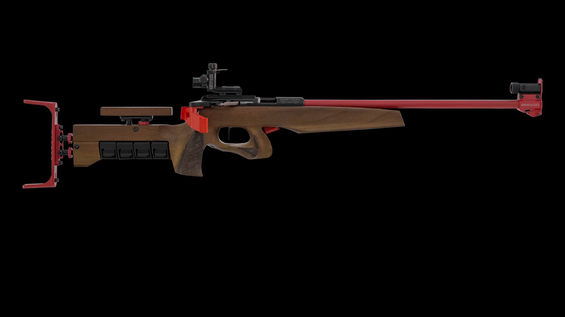 Биатлонная винтовка от Концерна «Калашников». Общая длина - 1100 мм Длина ствола - 550 мм Применяемый патрон - .22LR Емкость магазина - 5 патронов Прицельная дальность - 50 м Масса - 3,5 кг
