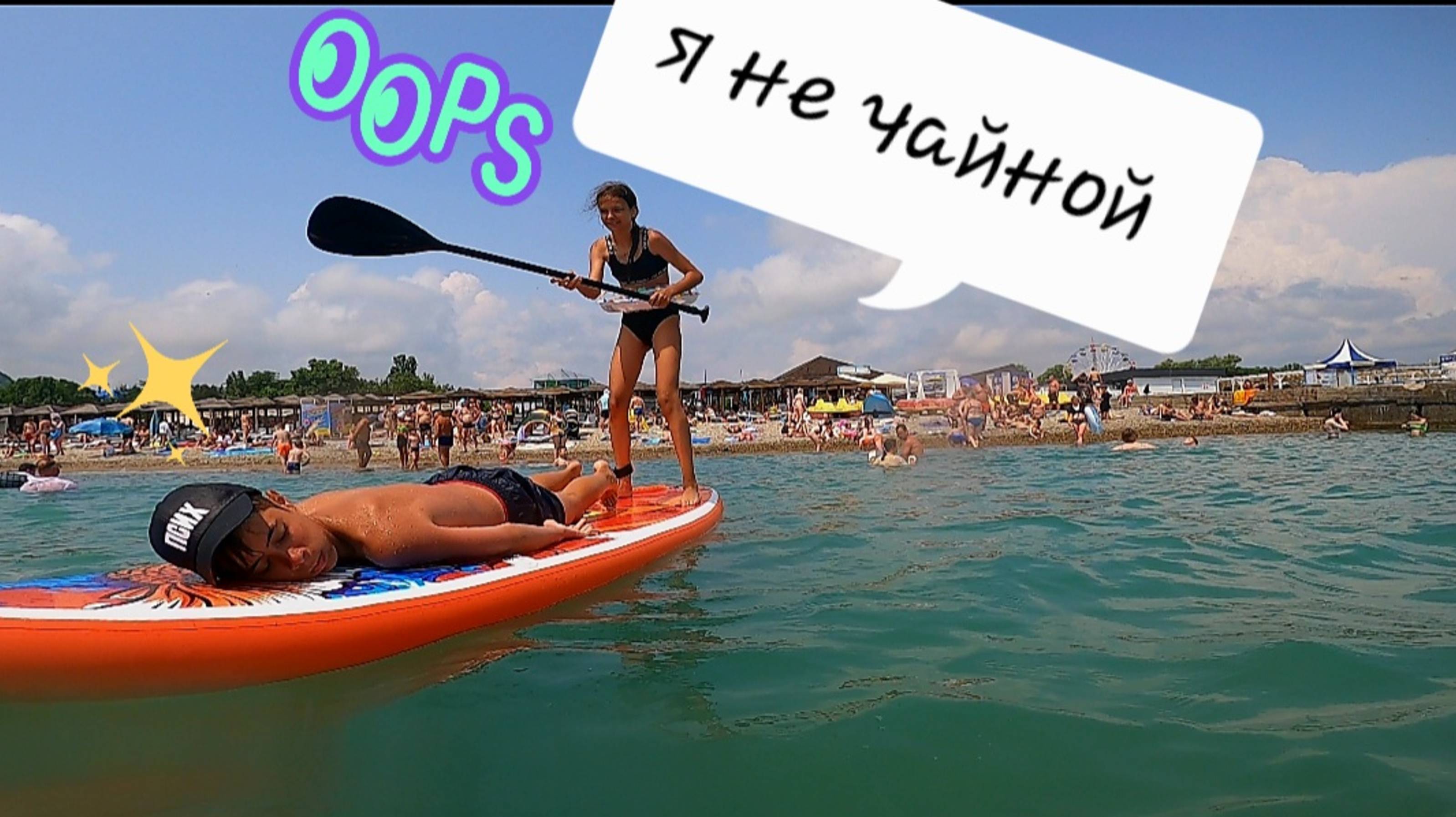 Сапборд первый заплыв сразу на море семья довольна #отдых #trending #приколы