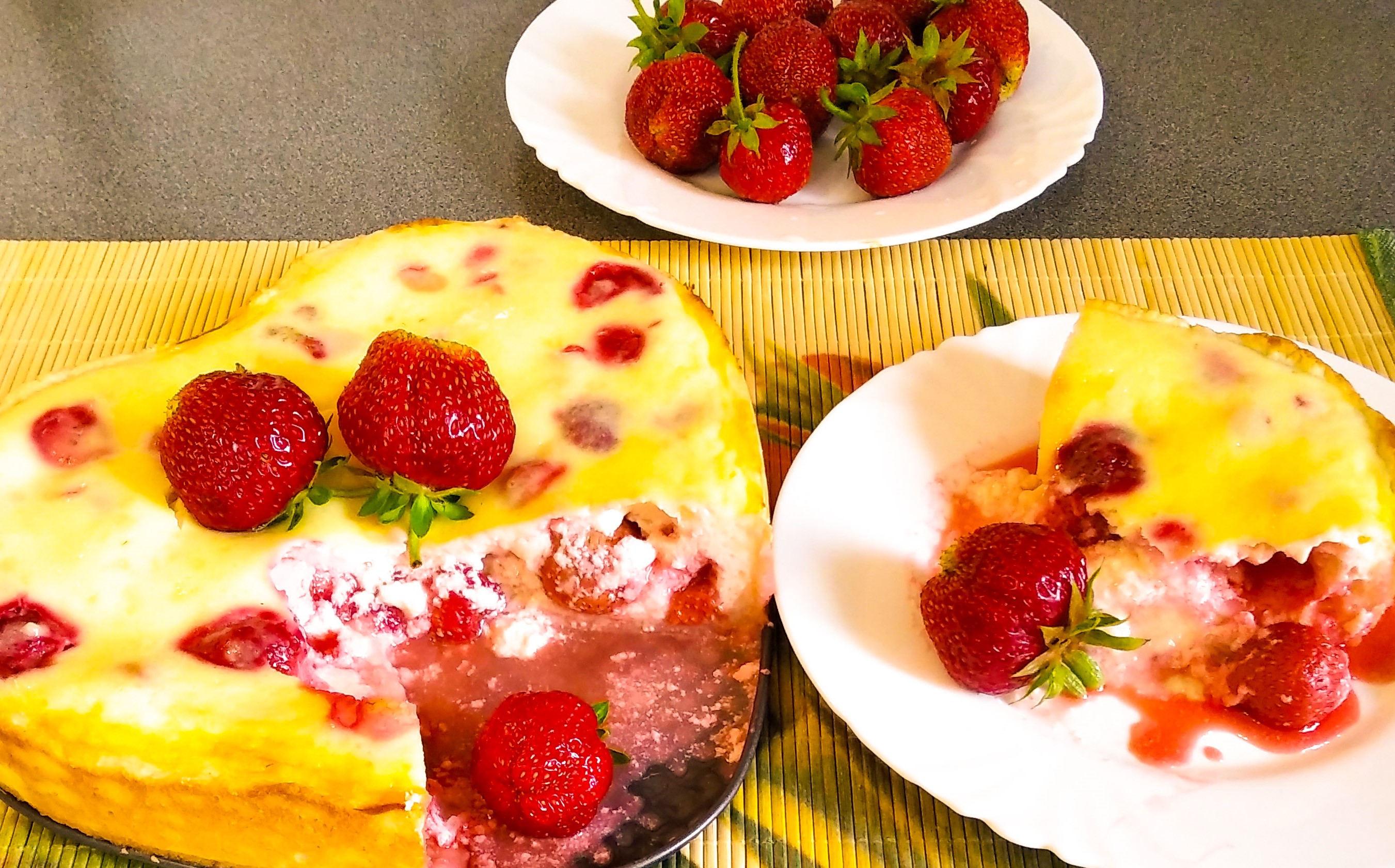 Клубничный пирог в сметанной заливке в песочном тесте, понравится всем!