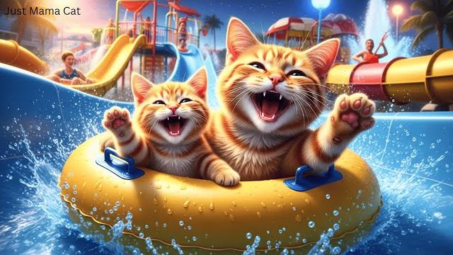 Мама-кошка превратила мечту рыжего котенка в волшебное приключение в аквапарке 💦🐾✨