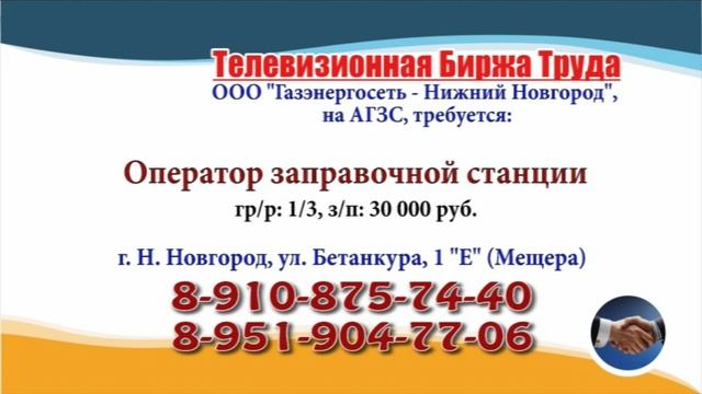 Вакансии и телефоны прямых работодателей в специализированной программе по трудоустройству "Телевизионная Биржа Труда" - г.НИЖНИЙ НОВГОРОД