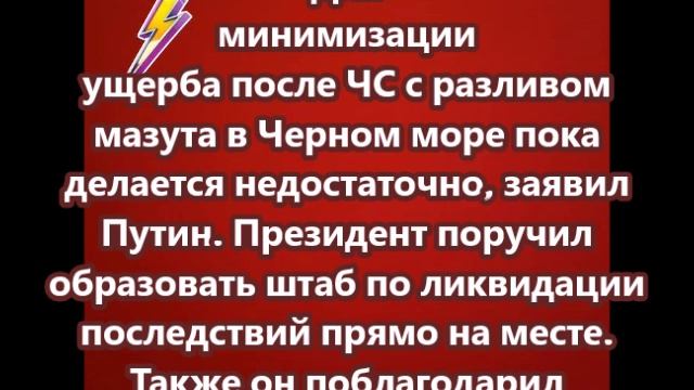Для минимизации ущерба после ЧС с разливом мазута в Черном море пока делается недостаточно, заявил Путин