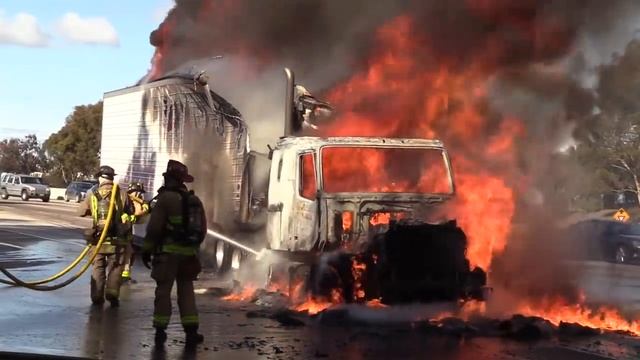 National City: Amazing Video I-805 Semi-Truck Fire 01102017