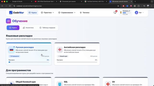 Пробую бесплатный тренажёр CodeWar и показываю, как он ускоряет слепую печать. Делюсь, что мешало и что реально помогло улучшить скорость ============================================ ССЫЛКА: https://codewar.ru ============================================ Для коммерческих предложений: applemansyy@gmail.com ============================================ Instagram- https://www.instagram.com/ilyaavladimirovich ============================================ Мой телеграмм канал- https://t.me/pleasuremusic2 Мой Лайф-Канал -https://www.youtube.com/channel/UCcYZ... ============================================ На новый микрофон: https://www.donationalerts.com/r/4869 ============================================ Монтирую видео в Final CUT PRO