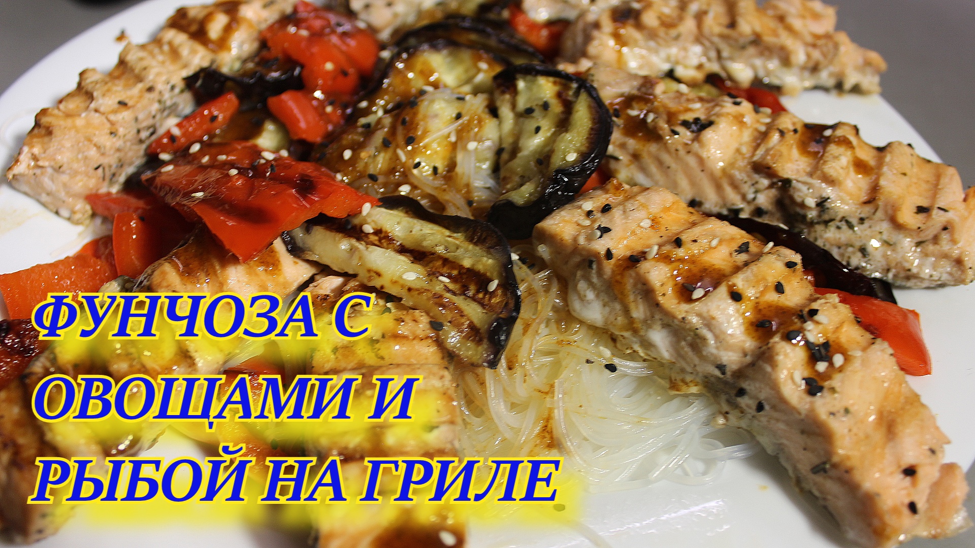 Вкусный ужин. Фунчоза с овощами гриль и рыба.