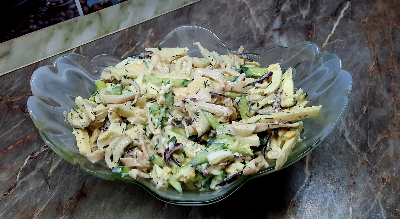 Это самый вкусный салат с кальмаром, нежный, сочный , бесподобно аппетитный и самое главное готовится на раз два!! Попробуйте, я уверена что вам понравится, а гости будут просить рецепт!! РЕЦЕПТ: - 3-4 небольшие тушки кальмара - 1 красная луковица - 4 яйца - 1 огурец - 1 зеленое яблоко - не много зелени укропа - 1 ст л с горкой домашнего майонеза - соль, перец по вкусу ***************************************************************** ВСЕМ ХОРОШЕГО НАСТРОЕНИЯ!! Мои контакты в соцсетях, заходите, присоединяйтесь ВК личная страница https://vk.com/id348972976 группа " От Татьяны с любовью" https://vk.com/club207931089 Одноклассники личная страница https://ok.ru/profile/546279962308?utm_campaign=android_share&utm_content=profile группа " От Татьяны с любовью " https://ok.ru/group/70000004445636 Дзен канал " От Татьяны с любовью" https://dzen.ru/id/60c6c4de123d1274943f82e2 Ютуб канал " От Татьяны с любовью " https://youtube.com/@user-otTatyanawithlove72?si=_wVt9ulVxjLq9c4y