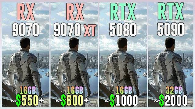 RX 9070 vs RX 9070 XT vs RTX 5080 vs RTX 5090 - Test in 25 Games 1080p, 1440p, 2160p, 4k, 2k, dlss 4, dlss 3.7, fsr 4, fsr 3.1, ray tracing, frame generation, native, Multi Frame Generation ⏩GPUs & Amazon US⏪ (Affiliate links) 💥RX 9070 16GB: https://amzn.to/4i1WalR 💥RX 9070 XT 16GB: https://amzn.to/4bxyEKX 💥RTX 5080 16GB: https://amzn.to/4jyqKER 💥RTX 5090 32GB: https://amzn.to/40zy7mz ⏩PC Setup⏪ - OS: Windows 11 Professional 64-bit - CPU: Ryzen 7 9800X3D - MB: GIGABYTE X870 AORUS Elite - RAM: Corsair Vengeance RGB 32GB DDR5 - 6400 Mhz CL32 💁♂️ When you buy from my Amazon links, I earn a small commission at no extra cost to you, plus you support the channel thank you.