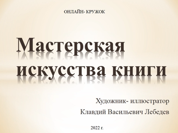 Библиотекарь Центральной библиотеки для детей и юношества им. Л. А. Кассиля Сгибнева Алёна в рамках онлайн- кружка «Мастерская искусства книги» представляет вниманию юных читателей видеопрезентацию «Художник – иллюстратор Клавдий Васильевич Лебедев». Клавдий Васильевич Лебедев - художник-передвижник, мастер жанровых картин и исторических композиций, представитель русской реалистической школы живописи рубежа XIX-XX веков.