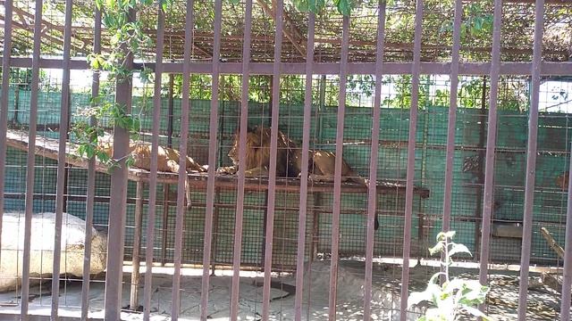 Львы любуются на солнышке в зоопарке Лукоморье на Азовском море