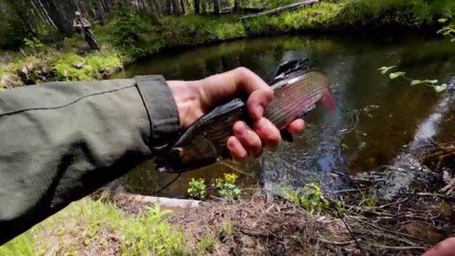 Красивейший Хариус!!! На малой реке....
