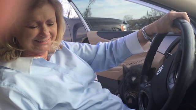 Зверь так облюбовал эту милую женщину и ее автомобиль, что решил остаться с ней ))