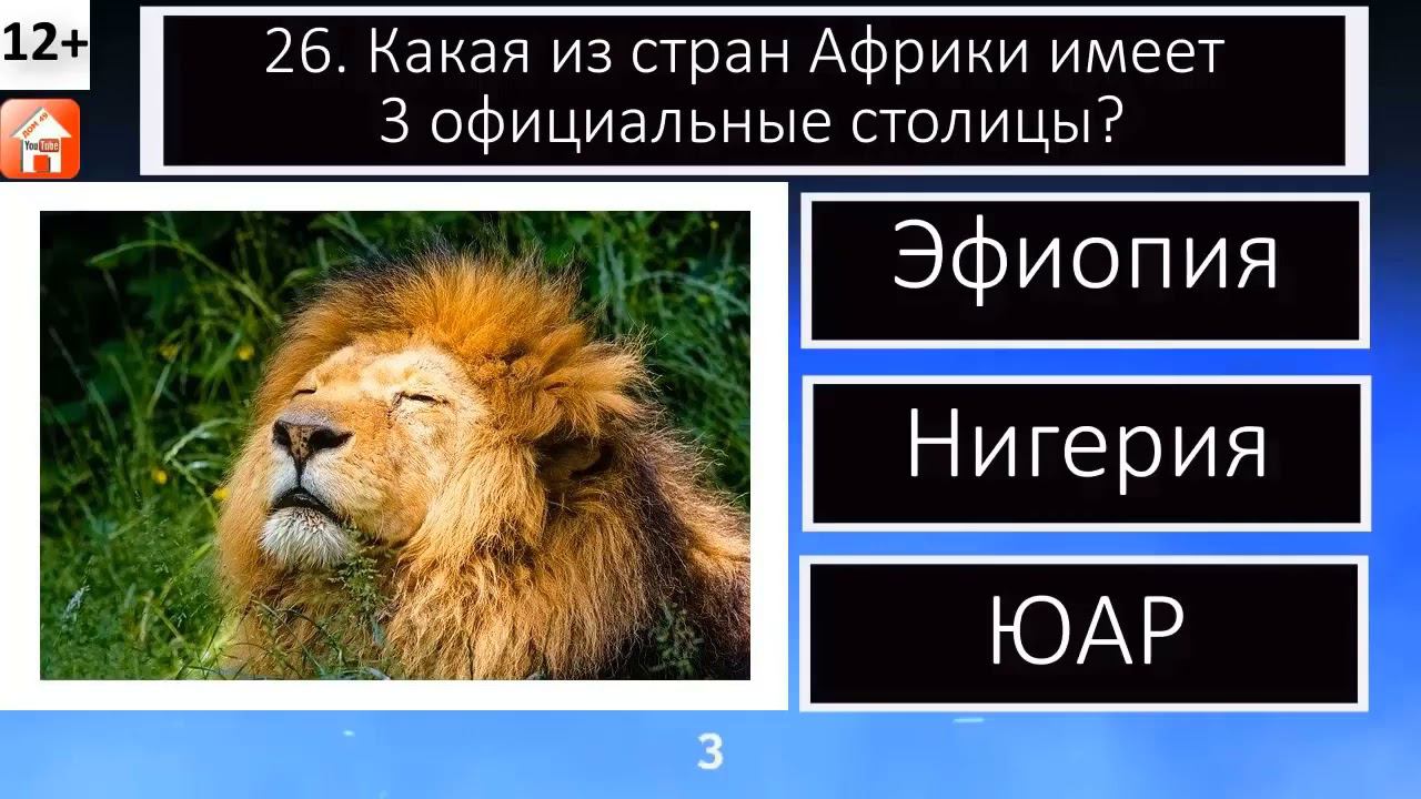 Поддержать канал: Номер Карты Сбера: 63900240 9009545837 (Татьяна Сергеевна..) Юмани - 41001120069136 ✅Канал Дом 49 в Дзен https://bit.ly/test-zen ✅Rutube https://rutube.ru/channel/24243775/ ✅ВКонтакте https://vk.com/domtestov ✅Telegram https://t.me/domtestov ✅Одноклассники https://ok.ru/group/68849937743914 ✅Подпишись на канал Дом 49 https://clck.ru/Nc6cP Не пропусти самое важное! ✅Подпишись на канал Финсоветник.рус https://clck.ru/YdnLm ✅Тесты на сайте Финсоветник.рус https://bit.ly/finsovet Тест по географии. Начинаем с первого вопроса https://www.youtube.com/watch?v=dxoaV6Fq5-Q&list=PLNTP7LqbY52oukQkeGrssG19rRbYVIx4N Тест по истории https://www.youtube.com/watch?v=TJ6NNuVM4i4 Тесты и викторины https://www.youtube.com/watch?v=dxoaV6Fq5-Q&list=PLNTP7LqbY52oukQkeGrssG19rRbYVIx4N&index=1 Финансовая грамотность https://www.youtube.com/watch?v=Kvxkc0ebUeQ&list=PLd1NpK9K29exxfOZSpde9dGVMsvKWC0Ls&index=1 Накопительное страхование жизни + калькулятор НСЖ https://bit.ly/nszh Страхование от смертельно опасных заболеваний https://0650.ru/soz 27 видов смертельно опасных заболеваний https://bit.ly/best-nszh НСЖ для детей https://bit.ly/nszh-deti Онкострахование https://bit.ly/oncostrhovanie Страхование онлайн https://bit.ly/ins-online Контакты https://www.youtube.com/channel/UCtqZT3_uLlOr6xMseGsEgiw/about В Альфе дают 500 ₽, если оформишь бесплатную дебетовую Альфа-Карту с кэшбэком. А ещё можно выиграть один из 100 000 денежных призов. Нужная ссылка https://alfa.me/nuHqlA Открыть брокерский счет или индивидуальный инвестиционный счет у брокера №1 в России по рейтингам Московской биржи за 5 минут Нужная ссылка https://broker.pif1.ru Тест по географии Хорошо ли ты знаешь географию? 10 вопросов и ответов Проверь себя в нашей викторине География для детей, школьников и взрослых Проверьте свои знания и эрудицию в нашем тесте География 10 вопросов и ответов №2 Хорошо ли ты знаешь географию? Тест состоит из 10 вопросов и ответов. У нас появился канал в Яндекс.Дзен https://bit.ly/test-zen , где мы будем размещать интересные ролики. Просьба поддержать канал подпиской, лайком и комментариями. Ваша поддержка поможет быстрее наполнять канал качественным контентом. Посмотрите наш первый большой тест по географии. Игра-викторина 100 вопросов с ответами. Тест уже посмотрели более 500 тысяч человек. Он подходит и детям, и взрослым. Даже, если вы не смогли ответить на все вопросы, не расстраивайтесь. Цель данного теста не только проверка, но и возможность узнать новое. После прохождения теста вы сможете найти информацию о неизвестных ранее фактах в интернете и поделиться своими находками с другими зрителями канала Дом 49 в комментариях. Возьмите ручку и тетрадку и начните игру прямо сейчас. В любой момент вы можете нажать на паузу, чтобы подумать. Таймкод поможет вам продолжить с удобного момента, если вы будете смотреть тест по частям. Здоровья, благополучия и удачи! Тесты, викторины, игры. Общая эрудиция, география, литература, биология, спорт, футбол, исторические и политические деятели, исторические события, медицина, здоровье, инвестиции, страхование, математика, знания, политика, время, космос, астрономия, зоология, окружающий мир, флаги, страны мира, континенты, регионы России, поэзия, живопись, литература, культура, химия, физика, экономика, страхование, обществознание, информатика, птицы, животные, попугаи, мир животных. #тест #география #тестпогеографии Продвигаем Youtube каналы https://youtube-manager.su/ Делаем сайты https://bit.ly/landing1917 Партнер БКС Мир инвестиций в г. Мытищи https://bit.ly/broker-mytischi Расчетный счет для бизнеса (ИП, ООО) https://bit.ly/rko-bank Скоро Масленица! Однодневные туры и экскурсии https://93555.ru/1day Многодневные туры и экскурсии https://93555.ru/mday Туры с кэшбэк