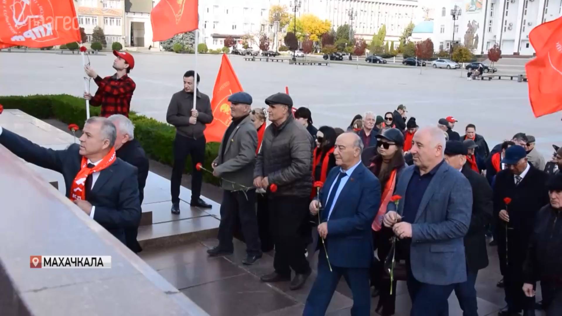 На центральной площади Махачкалы возложили цветы к памятникам Владимиру Ленину и Борцам за Советскую власть в Дагестане. Депутаты фракций КПРФ совместно с жителями Махачкалы так отметили 108-ю годовщину Великой Октябрьской социалистической революции. Праздничное шествие стало символом триумфа индустриализации над массовой неграмотностью, которую так упорно искореняла власть в советские годы. Отметим, подобные акции прошли также в других городах и районных центрах республики.