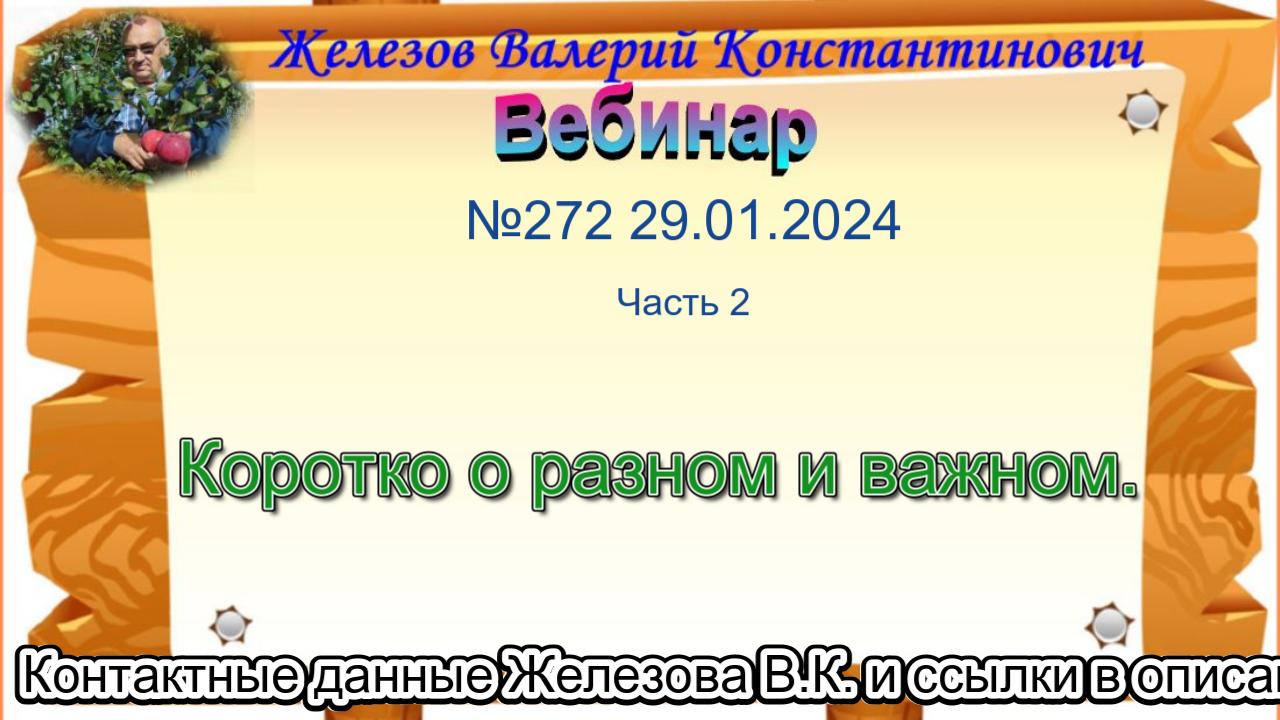 Железов Валерий. Вебинар 272. ч.2. Коротко о разном и важном.