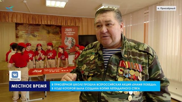 В приозёрной школе прошла всероссийская акция «Знамя победы», в ходе которой была создана копия легендарного стяга. Акция направлена на патриотическое воспитание молодого поколения. Изготовленная копия знамени победы займёт достойное место в школьном музее и станет частью всех патриотических мероприятий
