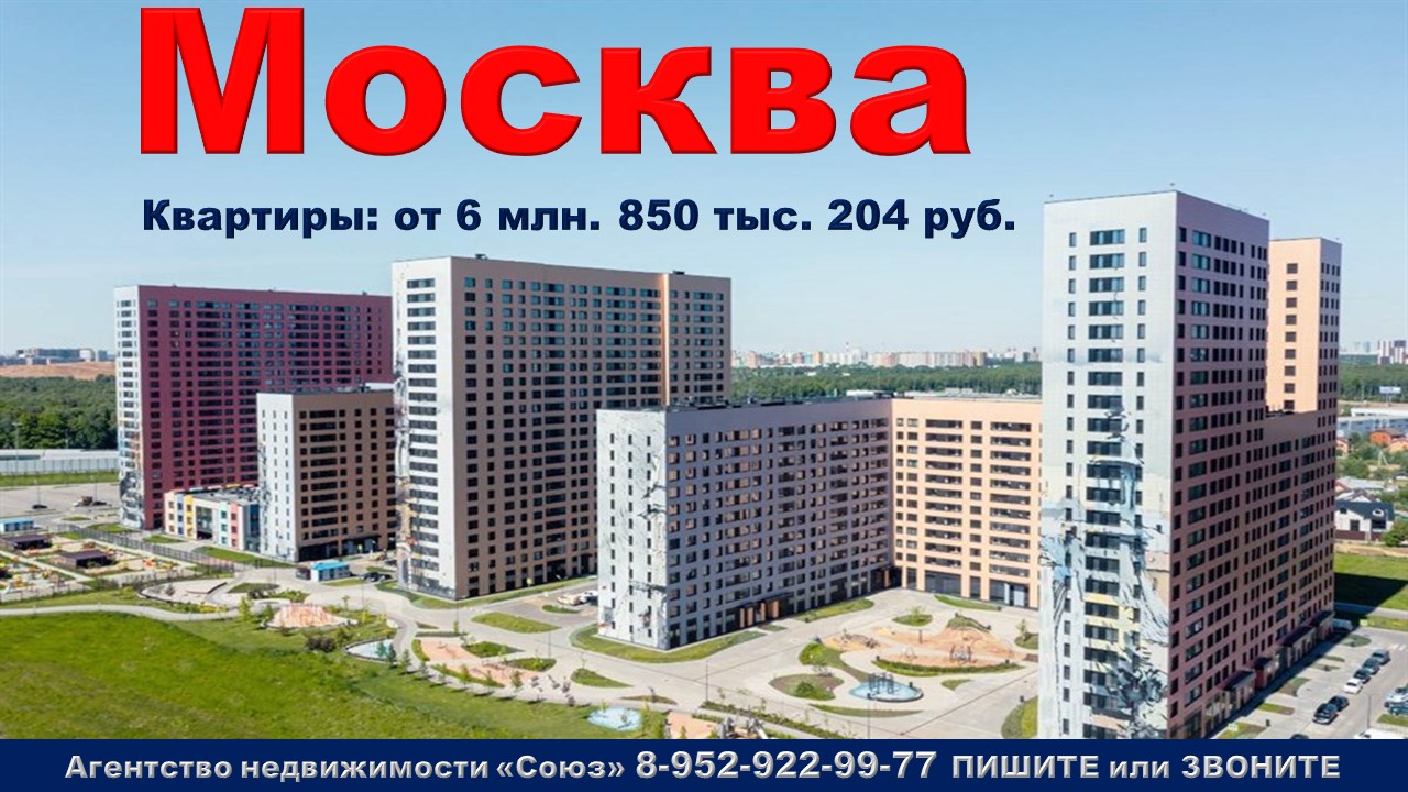 Подпишитесь на нас. Благодарим !!! https://www.youtube.com/@nedvigimoct/videos - мы на Ютубе https://dzen.ru/nedvigimoct?tab=longs&utm_referrer=dzen.ru - мы на Дзене https://rutube.ru/channel/27083000/videos/ - мы на Рутубе https://vk.com/club223108371 - мы в ВК https://ok.ru/lyubayan - мы в Ок Агентство недвижимости «СОЮЗ» Покупайте: квартиру в Москве. Московский п., Квартал 81 ул. м. Филатов луг (18 минут пешком) Агент по новостройкам: 89529229977 (WhatsApp) Цены на квартиры точно такие же как и у застройщика. Квартиры продаются БЕЗ РИЭЛТОРСКОЙ КОМИССИИ !!!. Ст. квартиры: от 6 млн. 850 тыс. 204 руб. Ежемесячный платеж: 32 815 руб. при ставке 6% Площадь общая:24,6 м2 - 33,1 м2 1к. квартиры: от 9 млн. 113 тыс. 822 руб. Ежемесячный платеж: 43 659 руб. при ставке 6% Площадь общая: 36,2 м2 - 60,9 м2 2к. квартиры: от 12 млн. 776 тыс. 056 руб. Ежемесячный платеж: 61 203 руб. при ставке 6% Площадь общая: 58,9 м2 - 77,8 м2 3к. квартиры: от 17 млн. 937 тыс. 172 руб. Ежемесячный платеж: 85 926 руб. при ставке 6% Площадь общая: 80,7 м2 - 105,8 м2 Срок сдачи: 2 кв. 2026 Срок выдачи ключей: 3 кв. 2026 Договор: ДДУ Тип дома: кирпично-монолитный Тип отделки: чистовая Парковка: отдельная Потолки: 2,82 м. Преимущества:Оригинальная архитектура фасада. Хорошая транспортная развязка. 2 детских сада и школа. Развитая инфраструктура. Близость к природе. Подземный паркинг. Описание комплекса:Жилой комплекс комфорт-класса с авторской архитектурой на территории Новой Москвы, расположенный в 5 км от МКАД по Киевскому шоссе, в шаговой доступности от одноимённой станции Сокольнической линии метро. Инфраструктура, которая строится параллельно с жилыми корпусами, включает два детских сада, школу на 800 учеников со своим стадионом, коммерческие помещения на первых этажах. На территории планируется размещение продуктовых магазинов, развивающих студий для детей и взрослых, кофейни, детского магазина, отделения банка, кондитерской, химчистки, аптеки, салона красоты. Во дворе будут детские и спортивные площадки, зоны отдыха с качелями и настилами для йоги, теннисные столы, навесы и гамаки, велодорожку длиной 1 км и инсталляции современного искусства. В десяти минутах ходьбы расположены гипермаркеты «Метро» и «Леруа Мерлен», техцентры «Тойота», «Ниссан» и «Фольксваген», в десяти минутах езды на автомобиле – торгово-развлекательный комплекс «РИО» с гипермаркетом «Лента», ТЦ «Соларис», деловые центры Neopolis, «Румянцево», Comcity, G10.