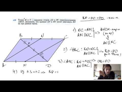 №432. Точки М и N — середины сторон AD и ВС параллелограмма ABCD. Докажите, что прямые AN и МС делят диагональ BD на три равные части. Поддержать канал рублём - 5469400944002125 (Сбербанк) Мой второй канал для подготовки к ЕГЭ и ОГЭ - https://www.youtube.com/ЕвгенийСумин Инстаграм - https://www.instagram.com/EGE_OGE.math Личный инстаграм - https://www.instagram.com/ee_sumin VK - https://vk.com/evgeniysumin FB - https://www.facebook.com/EvgeniySumin