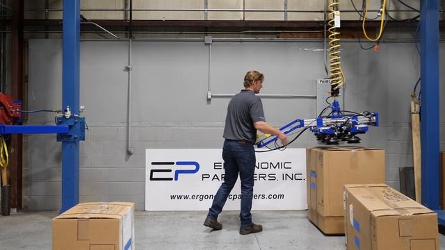 This vacuum lifter has adjustable vacuum cups that allows picking up different size boxes. It features an all aluminum and steel frame, 2-way x and y adjustable cups, ergonomic floating handle and is suspended from a Gorbel GeForce Intelligent Hoist with float mode. See all of our vacuum lifters here: https://www.ergonomicpartners.com/vacuum-gripper-tools-videos #box, #lifting, #ergonomic, #materialhandling, #vacuumlifter