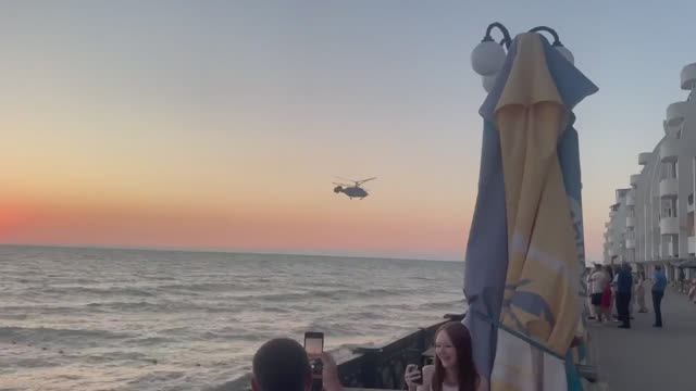 Ка-29 морской авиации ЧФ на закате, над набережной в Крыму.