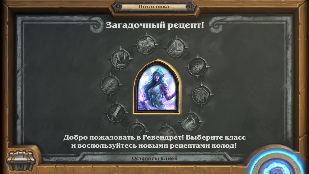 Потасовка в Hearthstone, в период с 31.08.2022 - 07.09.2022 Потасовка: Загадочный рецепт Добро пожаловать в Ревендрет! Выберите класс и воспользуйтесь новыми рецептами колод!