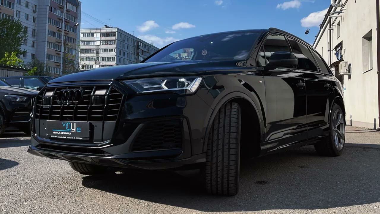 Наш сайт: https://vinylkazan.ru/ Audi Q7 Бронирование кузова матовой полиуретановой пленкой. Бронирование всей оптики глянцевым полиуретаном. Тонировка задней полусферы плёнкой Llumar 95% затемнения.