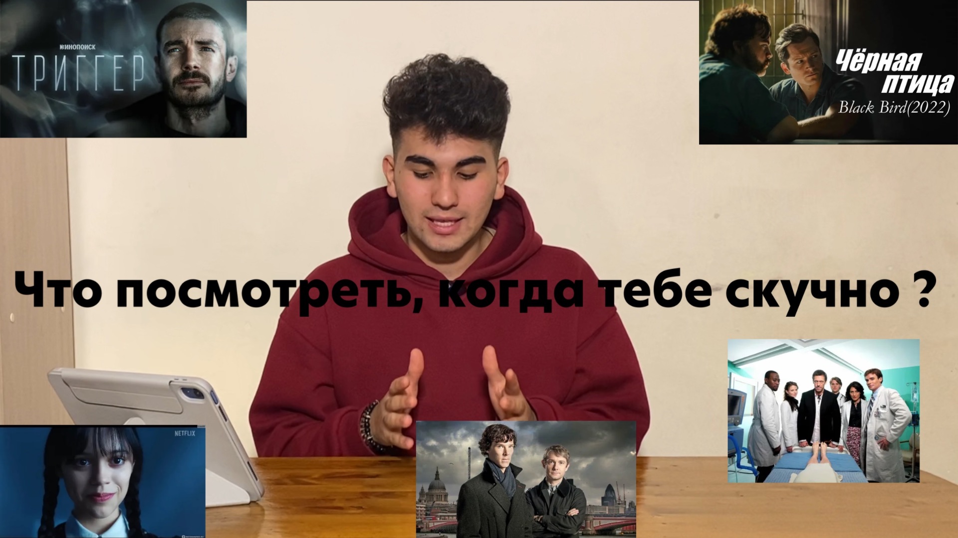 Скучно и не знаете, что посмотреть вечером? Хотите сериал, от которого сложно оторваться? В этом видео — моя личная подборка из 5 разноплановых проектов, каждый из которых стал культовым в своём жанре. Подробно разберу: «Шерлок» (Sherlock, BBC) — современная адаптация рассказов Конан Дойля. Бенедикт Камбербэтч в роли гениального, но эксцентричного сыщика, который использует дедукцию в эпоху смартфонов и соцсетей. Каждая серия — это запутанное дело с неожиданными поворотами. Идеально для любителей интеллектуальных головоломок и стильной визуальной подачи. «Доктор Хаус» (House, M.D.) — медицинский детектив с Хью Лори. Главный герой — циничный и гениальный диагност, который ненавидит пациентов, но одержим разгадыванием медицинских загадок. Сериал сочетает драму, чёрный юмор и напряжённые расследования болезней-«монстров». Подойдёт тем, кто ценит нестандартные характеры и сюжеты, где «диагноз — это преступление». «Триггер» — российский психологический триллер о провокативном психологе Артёме Стрелецком (Максим Матвеев). Он использует шоковые методы терапии, но сам скрывает тёмное прошлое. Сериал исследует границы этики в психотерапии, травмы и сложные отношения. Для зрителей, которые любят психологическую глубину и неоднозначных героев. «Чёрная птица» (Black Bird, Apple TV+) — мини‑сериал на основе мемуаров Джеймса Кина. Бывший спортсмен под прикрытием внедряется в тюрьму к серийному убийце, чтобы добыть признание. Основан на реальных событиях. Напряжённый, мрачный, с блестящей игрой актёров (Пол Уолтер Хаузер, Рэй Лиотта). Для фанатов криминальных триллеров с документальной основой. «Уэнсдей» (Wednesday, Netflix) — готическая подростковая драма о дочери семейки Аддамс в академии «Невермор». Уэнсдей расследует серию убийств, попутно борясь с одиночеством и сверхъестественными тайнами. Сочетание чёрного юмора, мистики и подростковой драмы. Идеально для тех, кто любит стильные визуальные решения и сильных героинь. 00:00 - начало 00:42 - сериал «Шерлок» 03:36 - сериал «Доктор Хаус» 06:34 - сериал «триггер» 09:04 - сериал «черная птица» 12:09 - сериал «Уэнсде» 14:00 - конец