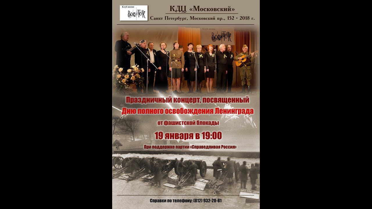 Праздничный концерт клуба песни "Восток", посвященный Дню полного освобождения Ленинграда от фашистской блокады. Санкт-Петербург, Московский пр., 152, КДЦ "Московский". 19 января 2018 г. Ведущая Елена Гудкова. Запись - А. Левитан.