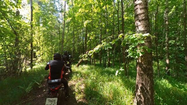 на эндуро боремся в лесу по бревнам