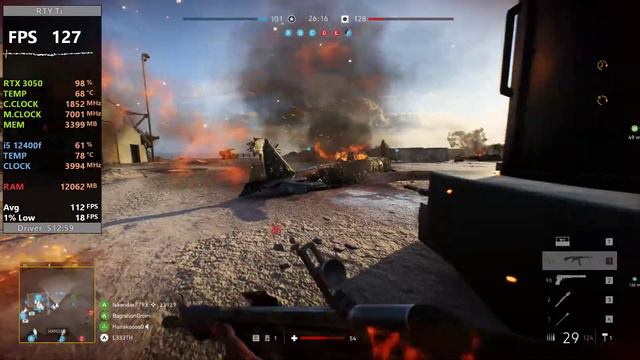 Battlefield V | RTX 3050 + i5-12400f 1080p